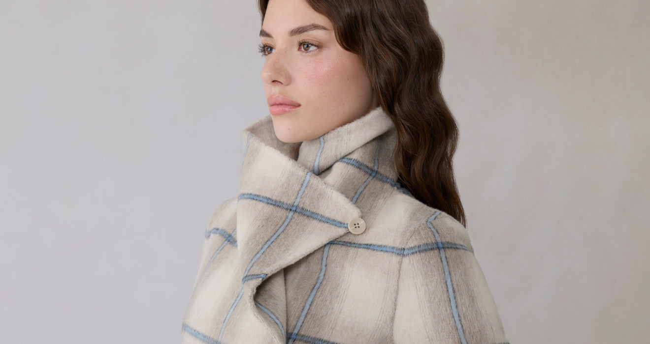 BRIDGETTE Wrap Coat in Plaid Double-Face Wool