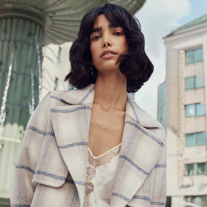 DEBORA Waisted Blazer Coat in Stretch Cross-Hatch