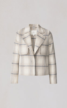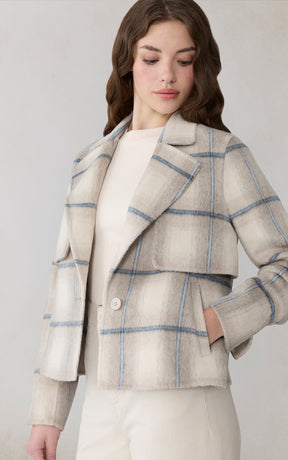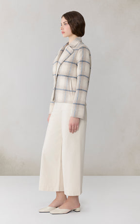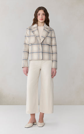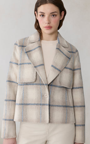 La veste SELAH-P par SOIA propose une version tartan de la veste droite signature de la marque. Sa silhouette délicatement structurée, faite d'une étoffe double face en mélange de laine, apporte motif et chaleur aux tenues habillées.
