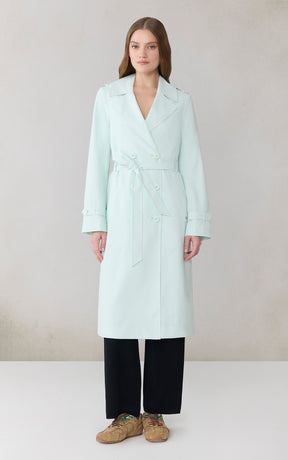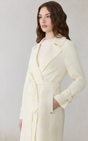 Let the BLAIRE by SOIA & KYO inspire your transitional weather ensembles. Featuring a classic double-breasted button front closure, this fully lined ultralight trench travels right down to the calf with a detachable belt at the waist. Complete with signature shoulder tabs, sleeve belts, and a notched collar. Water-repellent tops it off.