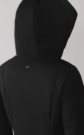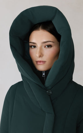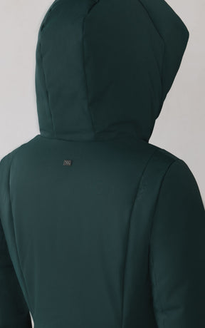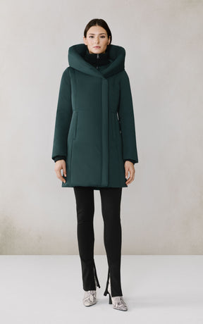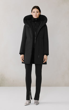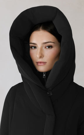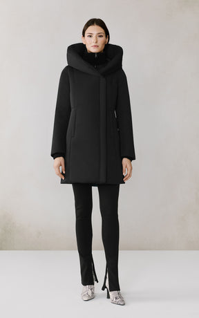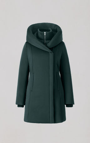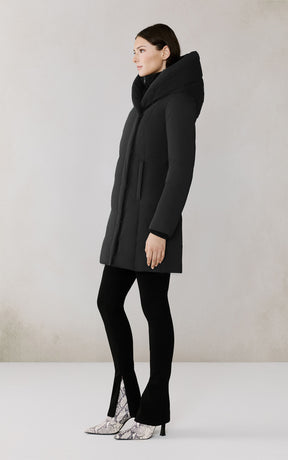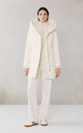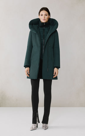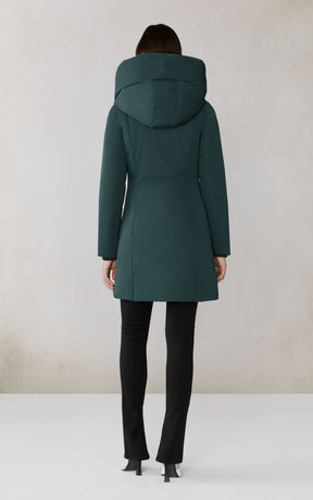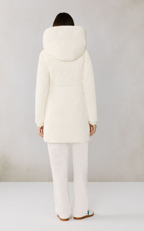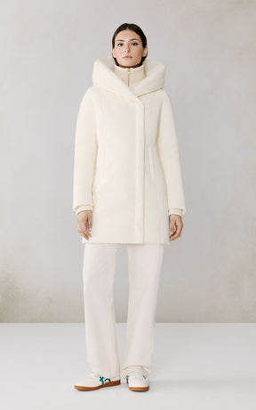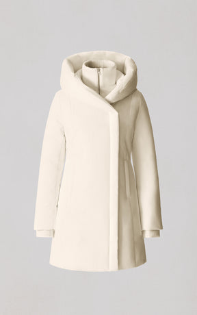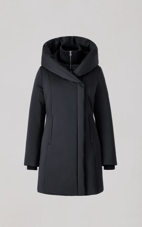 The CAMELIA-U by SOIA & KYO pairs winter performance with signature design. Engineered for -30 °C, it’s filled with RDS-certified down and includes a quilted puffer bib for extra protection. A hidden zip closure, rib-knit storm cuffs, and fleece-lined pockets deliver comfort, while the cotton-blend shell adds subtle texture to its sleek silhouette.
