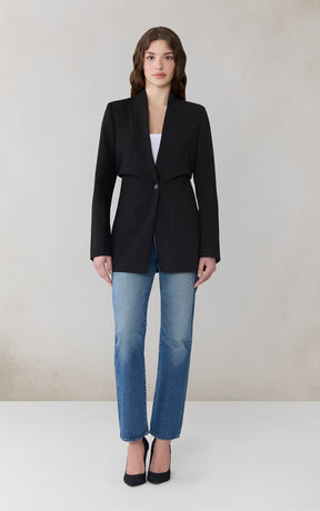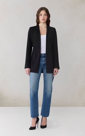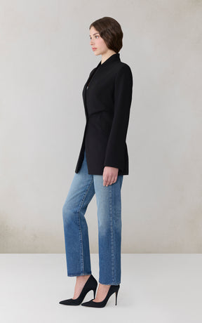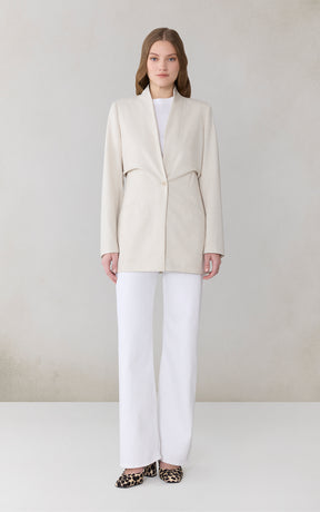 DEBORA Waisted Blazer Coat in Stretch Cross-Hatch