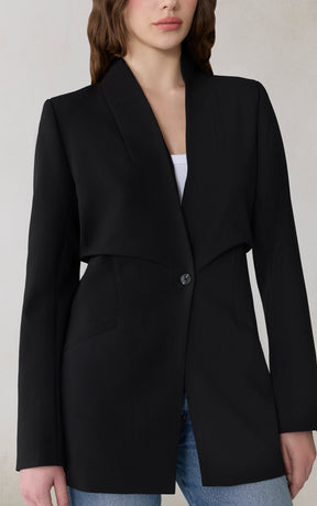 DEBORA by SOIA elevates the blazer-coat silhouette with soft draping and clean tailoring. Crafted in a stretch cross-hatch blend, it offers a polished, mid-thigh layer that moves effortlessly through the week.