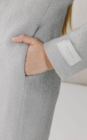 The DIANE by SOIA & KYO is crafted from a rich bouclé wool blend with mohair and alpaca for textured warmth and softness. Featuring a notched lapel collar and single-breasted button front, it’s a semi-fitted below-the-knee coat designed for timeless polish and easy layering.