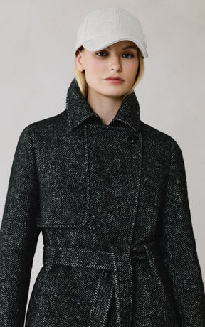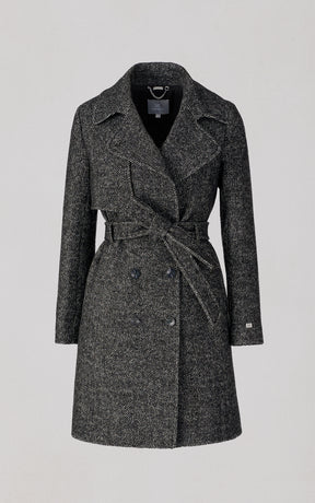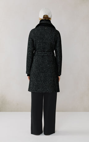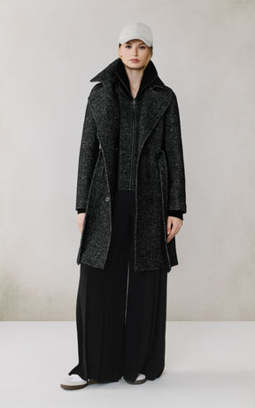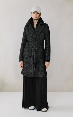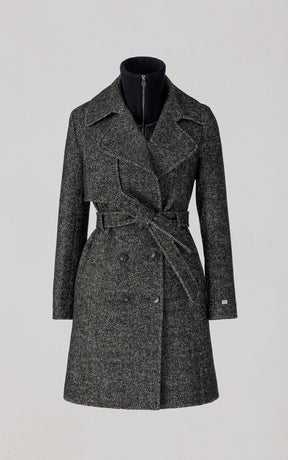 The FABIANNE-H by SOIA & KYO blends classic trench styling with winter-ready features. Made from a warm wool blend, it includes a detachable quilted bib and ribbed collar with zipper closure for added insulation. Double-breasted with a tie belt, it balances function and timeless appeal.