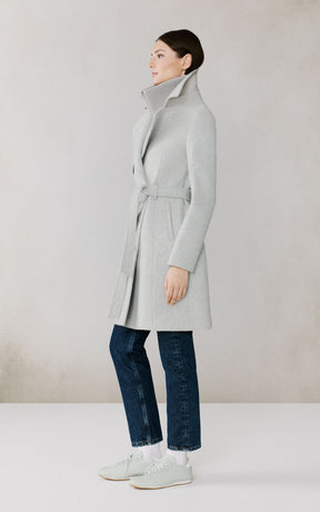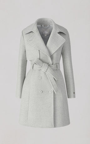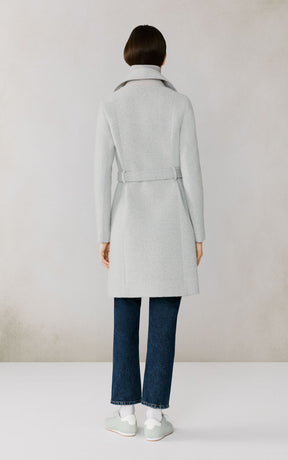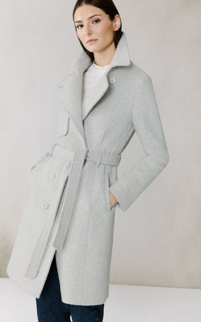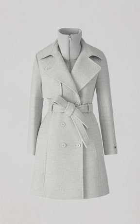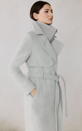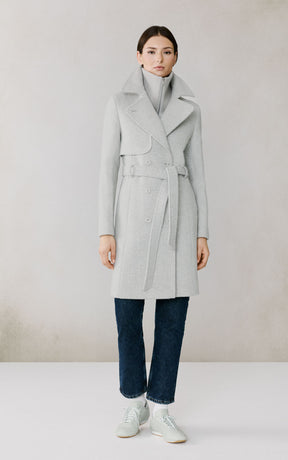 The FABIANNE-H by SOIA & KYO blends classic trench styling with winter-ready features. Made from a warm wool blend, it includes a detachable quilted bib and ribbed collar with zipper closure for added insulation. Double-breasted with a tie belt, it balances function and timeless appeal.