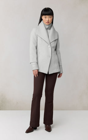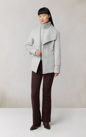FRIEDA by SOIA & KYO is a slim-fitting wool coat with thoughtful layers. A detachable bib with ribbed knit collar and puffer cuffs offer extra warmth and dimension. Button closure and invisible zip pockets keep it classic and clean.