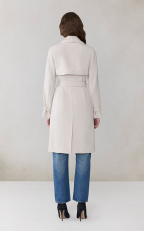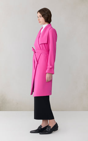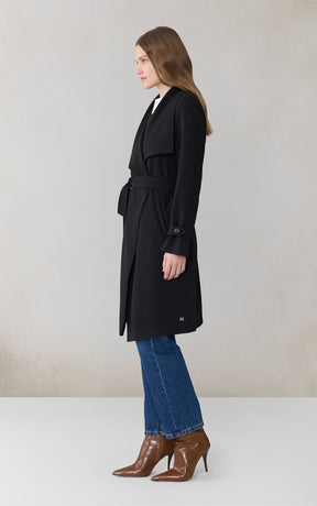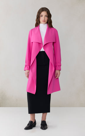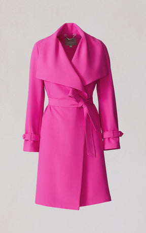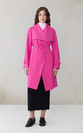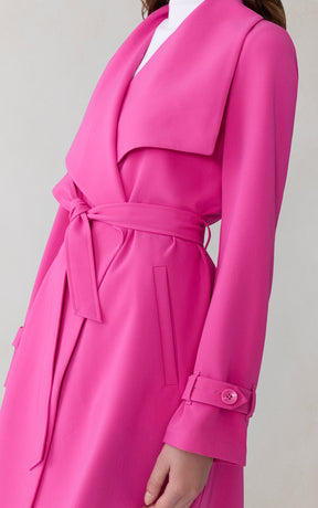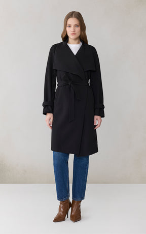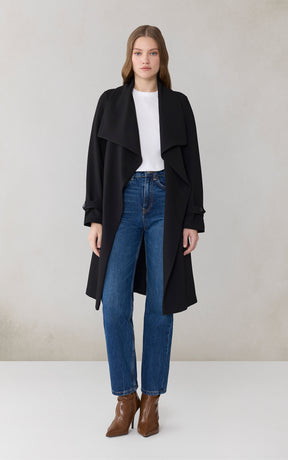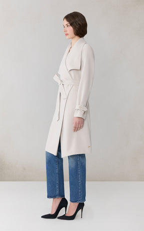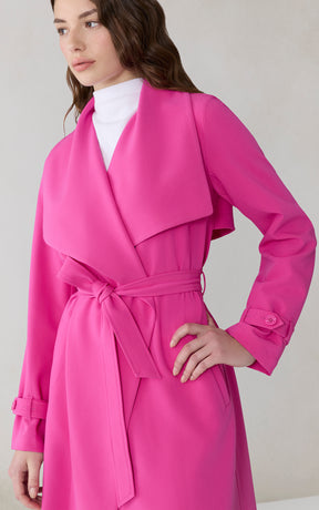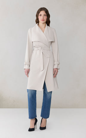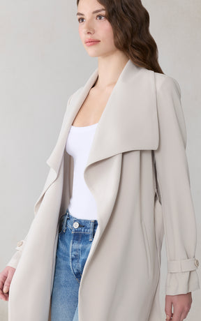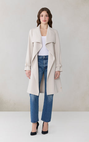 OLIVIA by SOIA & KYO brings a soft structure to cool days. With its draped cascade collar and adjustable sleeve belt, this wrap coat is all about tailored ease. A detachable belt, hidden collar button, and half-back lining add both polish and function.