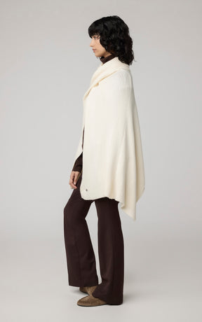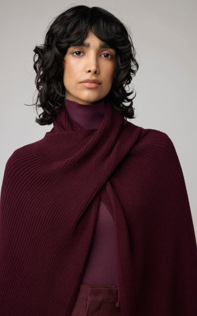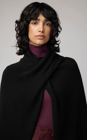 The REBEECA by SOIA & KYO is a beautifully oversized rib-knit scarf that doubles as an eye-catching cape. Made from a lightweight knitted fabric with ribbed edges, it provides a full range of movement while keeping you warm. Punctuated by a sophisticated cross-over front design.