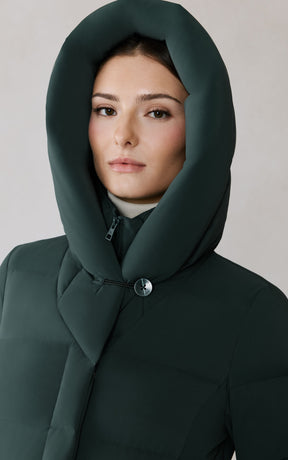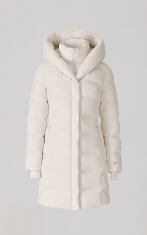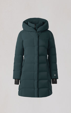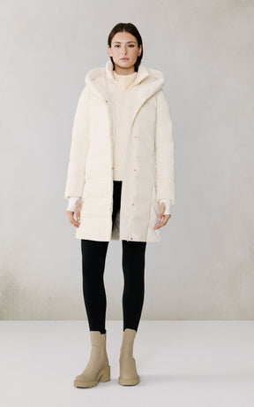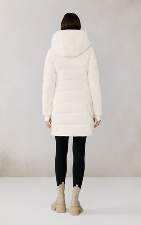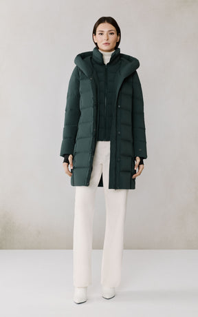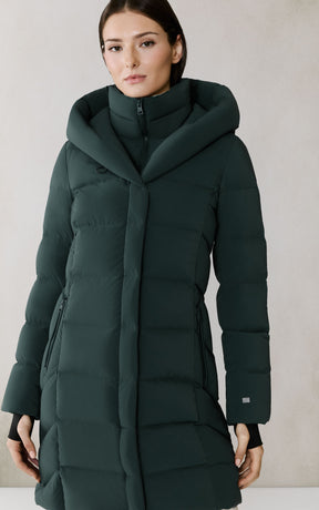 SONNY-N by SOIA & KYO is a sleek down coat engineered for deep winter. With channel and chevron quilting, a hidden-closure hood, and a warm quilted bib, it’s filled with premium RDS-certified down and rated for -25 °C. Storm cuffs and fleece-lined pockets lock in the heat for true cold-weather comfort.